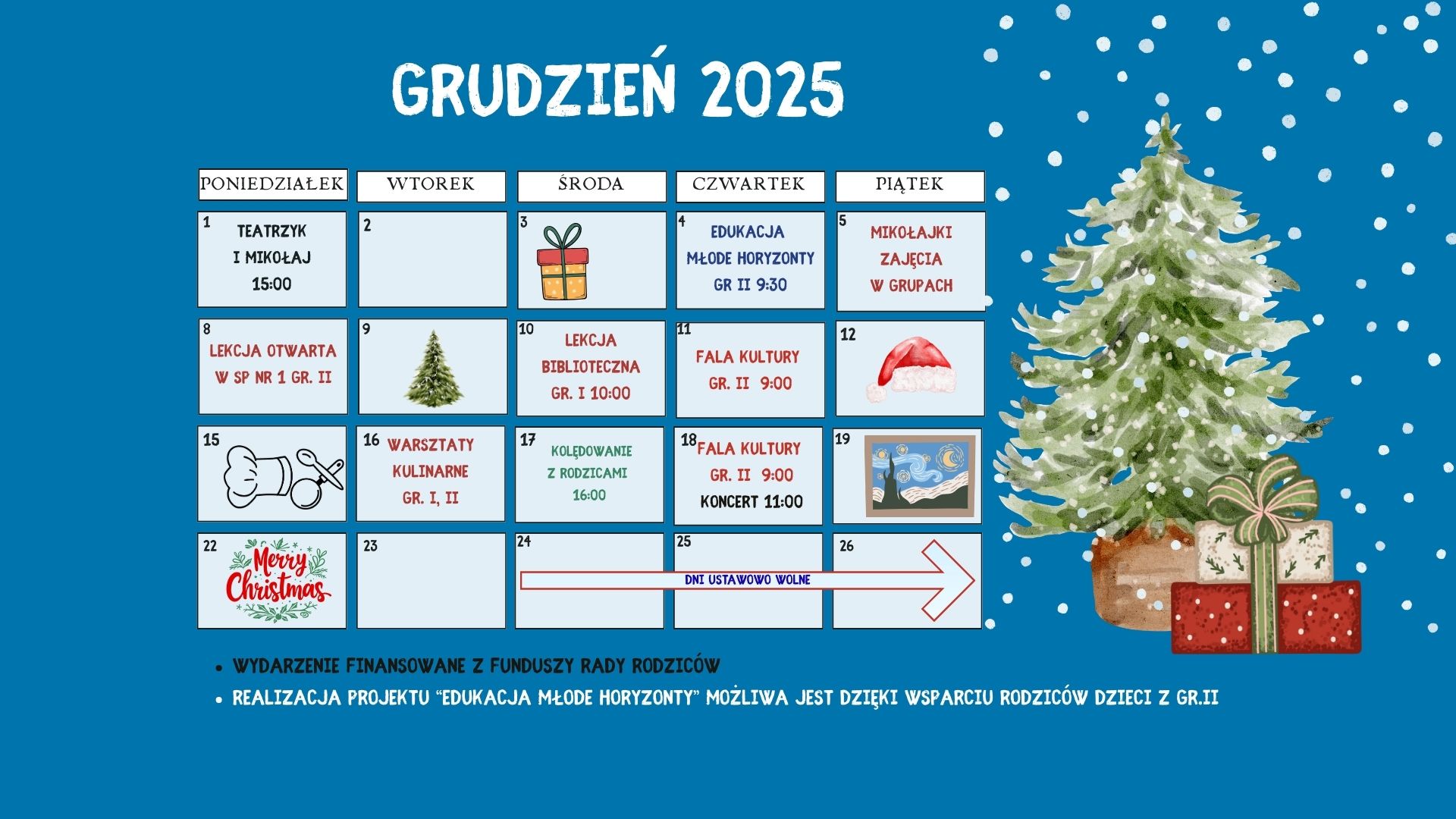 - 17.12 - Kolędowanie z rodzicami - spotkanie świąteczne z rodzicami / gr. I i II godz. 16:00