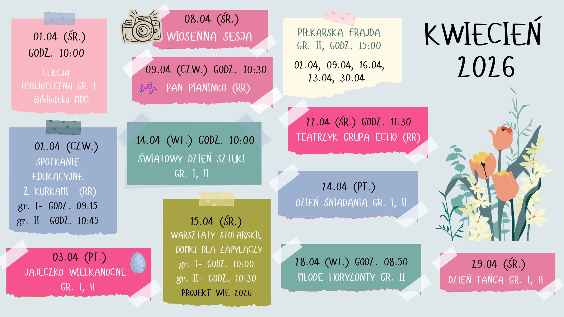 - 01.04 – Lekcja biblioteczna (gr. I) Biblioteka MDM, godz. 10:00