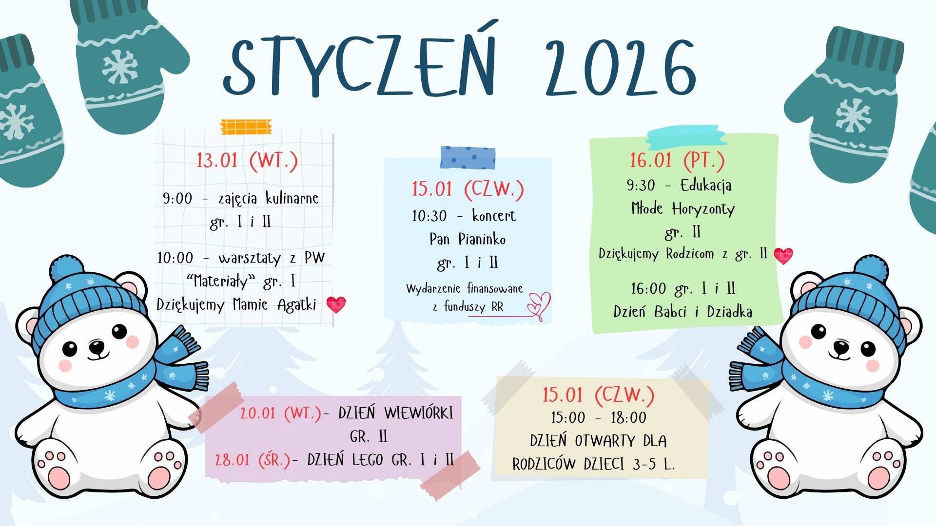 - 13.01- zajęcia kulinarne gr. I i II godz. 9:00